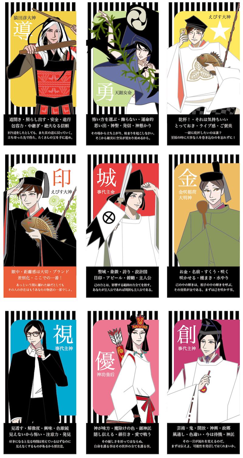 主に【菊と稲荷】に登場されている神々からのご神託を伝えるカードであり、その御影(姿)がお守り札となります。今回の限定デザインは『☆』と『視』です。
